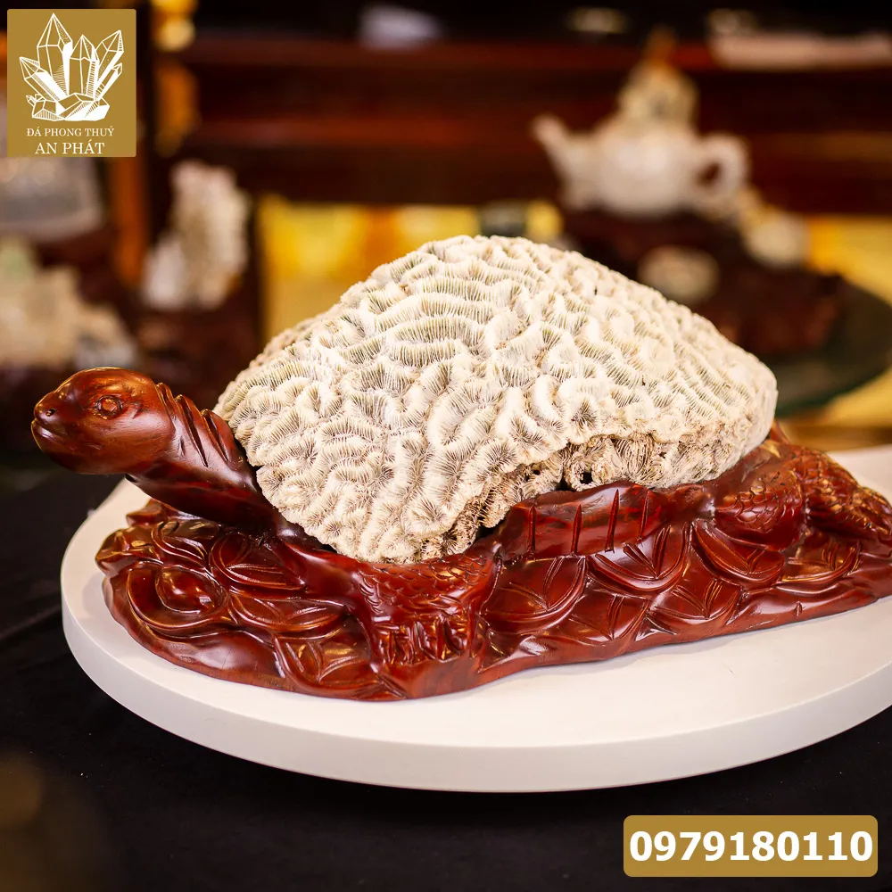 Mẫu rùa san hô sử dụng san hô hóa thạch kết hợp với gỗ hương đỏ vô cùng độc đáo sáng tạo chỉ có tại An Phát. Từ phần thân rùa cho đến đầu rùa đều được chạm khắc vô cùng tỉ mỉ, công phu và cầu kì.
