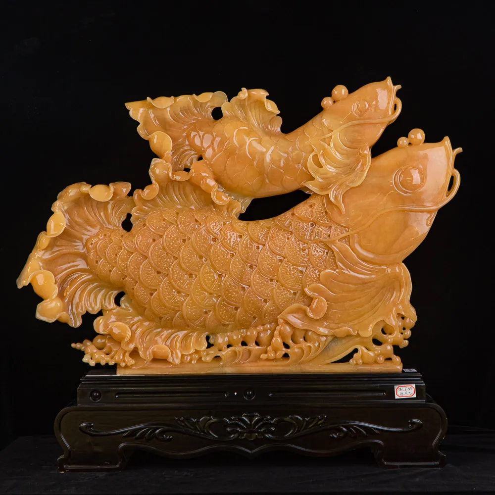 Tác Phẩm Cá Rồng Đá Phong Thủy, Đá Ngọc Onyx Vàng (Quà Tặng Phong Thủy VIP) M2423