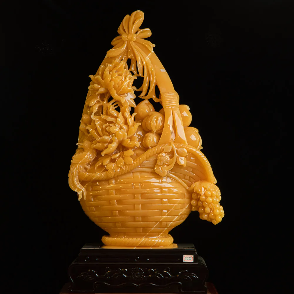 Tác Phẩm Giỏ Hoa Phú Quý Đá Phong Thủy, Đá Ngọc Onyx (Quà Tặng Phong Thủy VIP) M2422