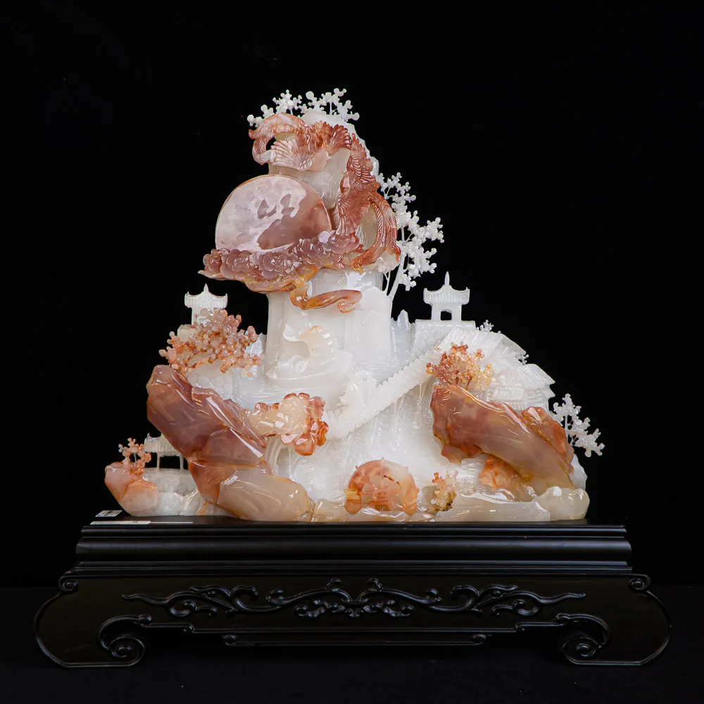 Tác Phẩm Hoa Khai Phú Quý Đá Phong Thủy, Đá Ngọc Onyx (Quà Tặng Phong Thủy VIP) M2413
