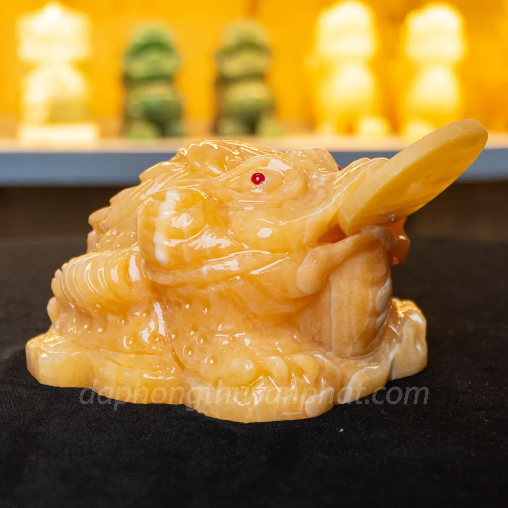 Cóc thiềm thừ có tác dụng cầu tài lộc, đem đến cuộc sống may mắn, bình an, viên mãn vẹn tròn cho gia chủ. Đồng thời Thiềm Thử được chế tác từ đá hoàng long vàng đem đến cho chủ nhân nhiều may mắn. Với tư thể ngậm tiền và như đang chuẩn bị nhả tiền vàng cho gia chủ. Cóc thiềm thừ đá hoàng long vàng giúp cho chủ nhân có được nhiều may mắn trong lĩnh vực làm ăn buôn bán.