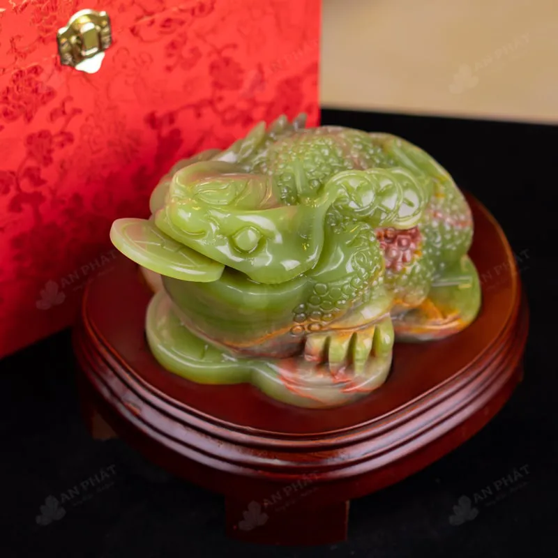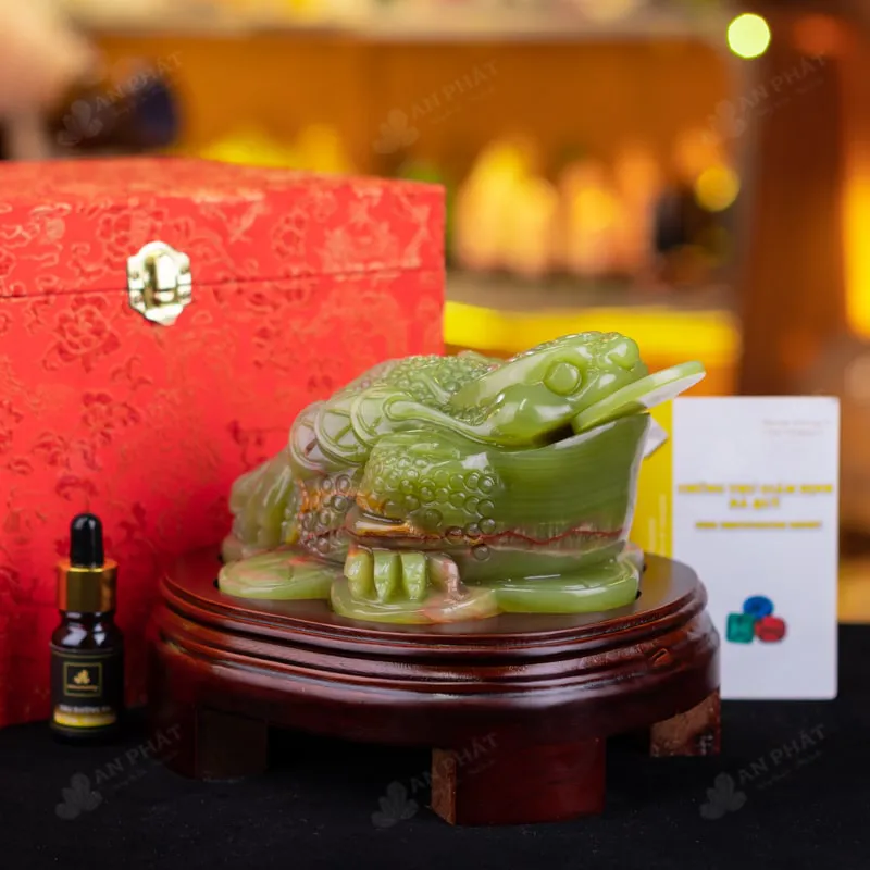 - Trọn bộ sản phẩm bao gồm: thiềm thừ + đế gỗ + hộp đựng sang trọng + túi giấy sang trọng + dầu dưỡng đá + thiệp + giấy kiểm định chất lượng đá + khăm thơm bao sái + Giấy hưỡng dẫn trực tiếp an vị + khai quang tại chùa Tứ Kỳ
