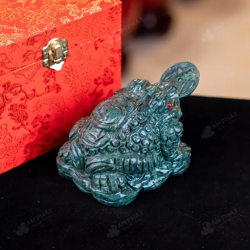 - Trọn bộ sản phẩm bao gồm: thiềm thừ + hộp đựng sang trọng + túi giấy sang trọng + dầu dưỡng đá + thiệp + giấy kiểm định chất lượng đá + khăm thơm bao sái + giấy hưỡng dẫn trực tiếp an vị + khai quang tại chùa Tứ Kỳ