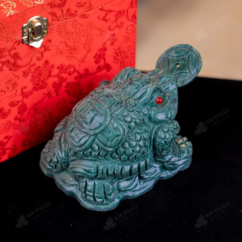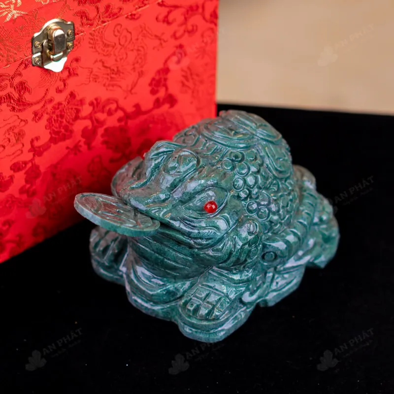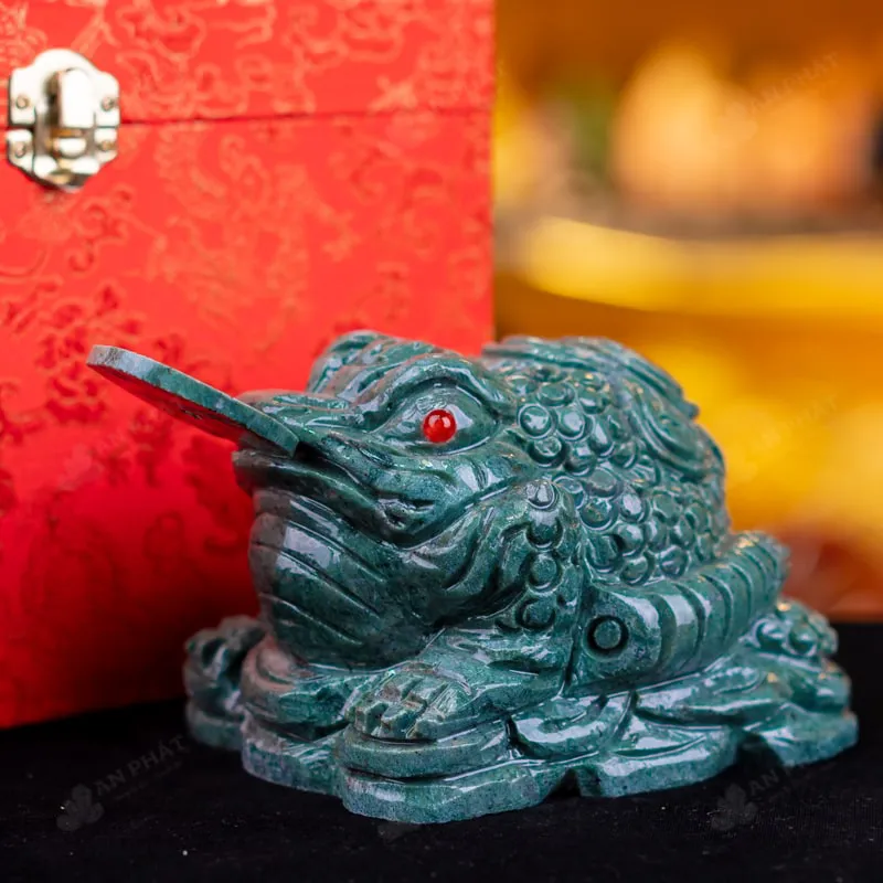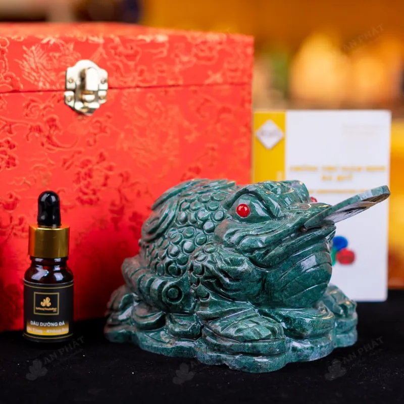 - Trọn bộ sản phẩm bao gồm: thiềm thừ + hộp đựng sang trọng + túi giấy sang trọng + dầu dưỡng đá + thiệp + giấy kiểm định chất lượng đá + khăm thơm bao sái + giấy hưỡng dẫn trực tiếp an vị + khai quang tại chùa Tứ Kỳ