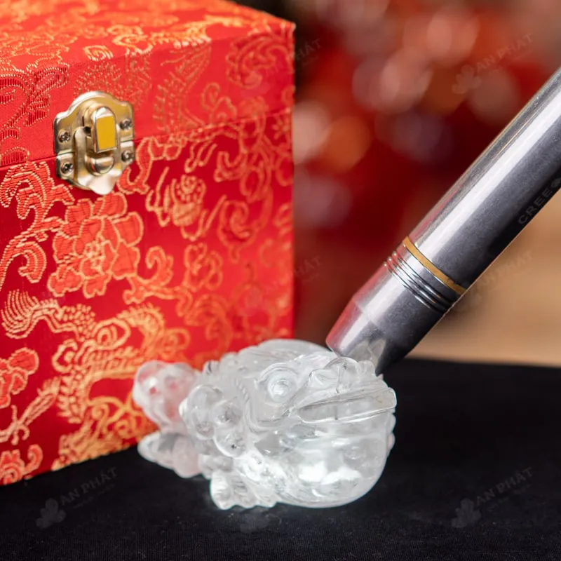 - Trọn bộ sản phẩm bao gồm: thiềm thừ + hộp đựng sang trọng + túi giấy sang trọng + dầu dưỡng đá + thiệp + giấy kiểm định chất lượng đá + khăn thơm bao sái + giấy hướng dẫn trực tiếp an vị + khai quang tại chùa Tứ Kỳ