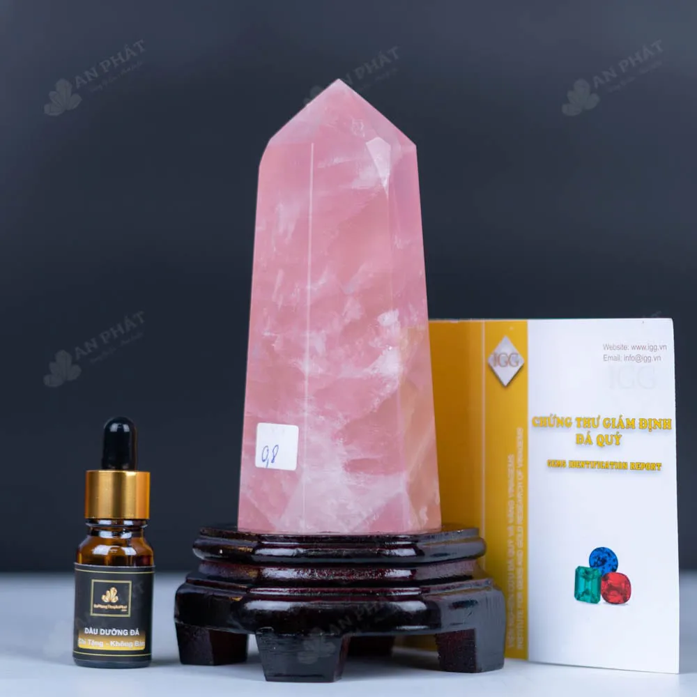 - Trọn bộ sản phẩm bao gồm: trụ thạch anh + đế gỗ + túi giấy sang trọng + dầu dưỡng đá + giấy kiểm định chất lượng đá