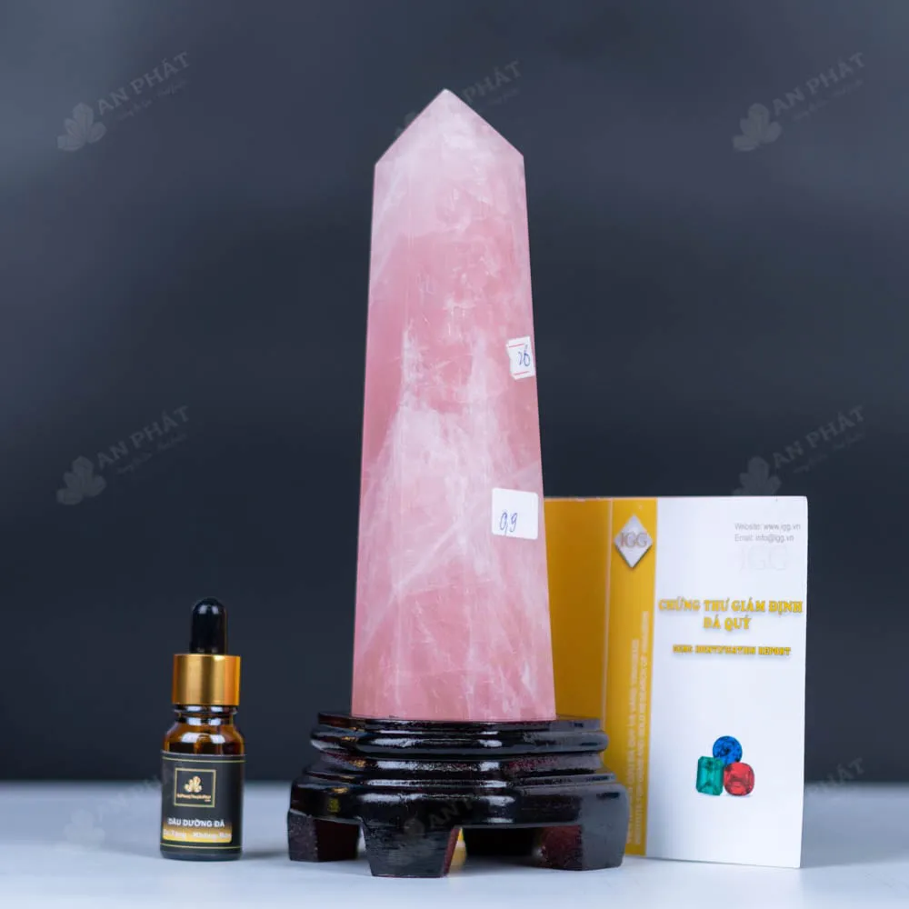 - Trọn bộ sản phẩm bao gồm: trụ thạch anh + đế gỗ + túi giấy sang trọng + dầu dưỡng đá + giấy kiểm định chất lượng đá