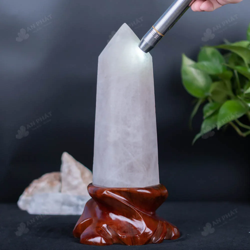 - Trọn bộ sản phẩm bao gồm: trụ thạch anh + đế gỗ + túi giấy sang trọng + dầu dưỡng đá + giấy kiểm định chất lượng đá