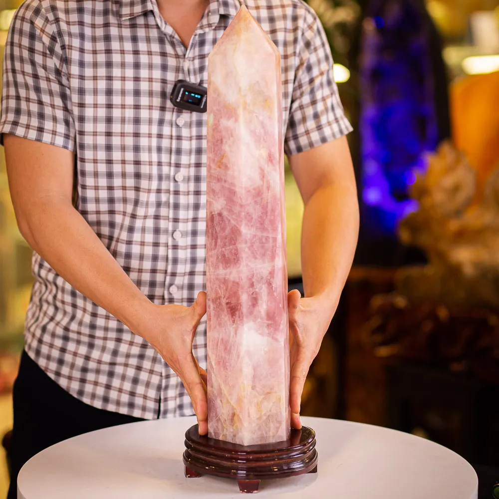 Mẫu sản phẩm trụ đá thạch anh 0753 được làm từ chất liệu thạch anh hồng tự nhiên nguyên khối. Chính vì vậy, có độ thấu quang cực kỳ cao. Trông rất sang trọng và phong thủy.