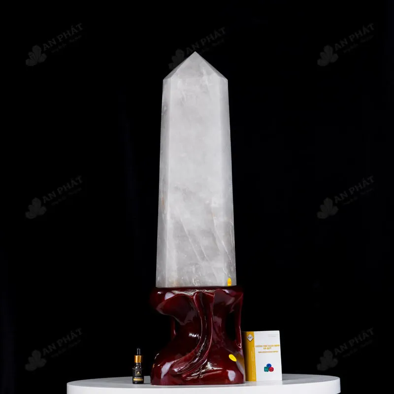 - Trọn bộ sản phẩm bao gồm: trụ thạch anh + đế gỗ + dầu dưỡng đá + thiệp + giấy kiểm định chất lượng đá