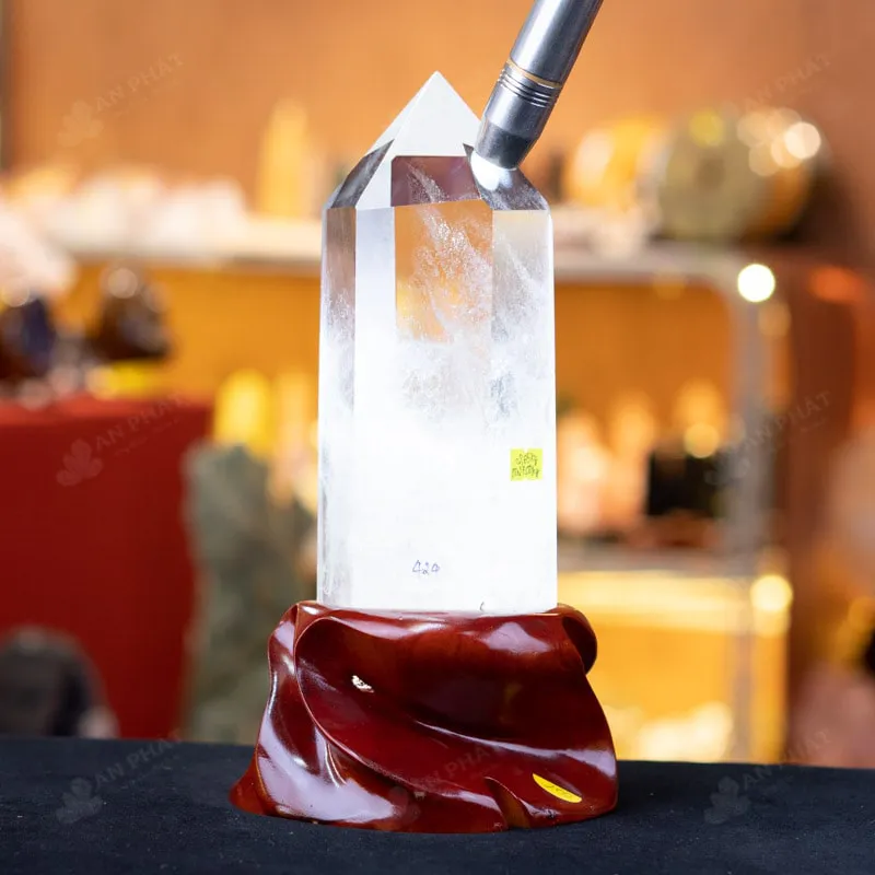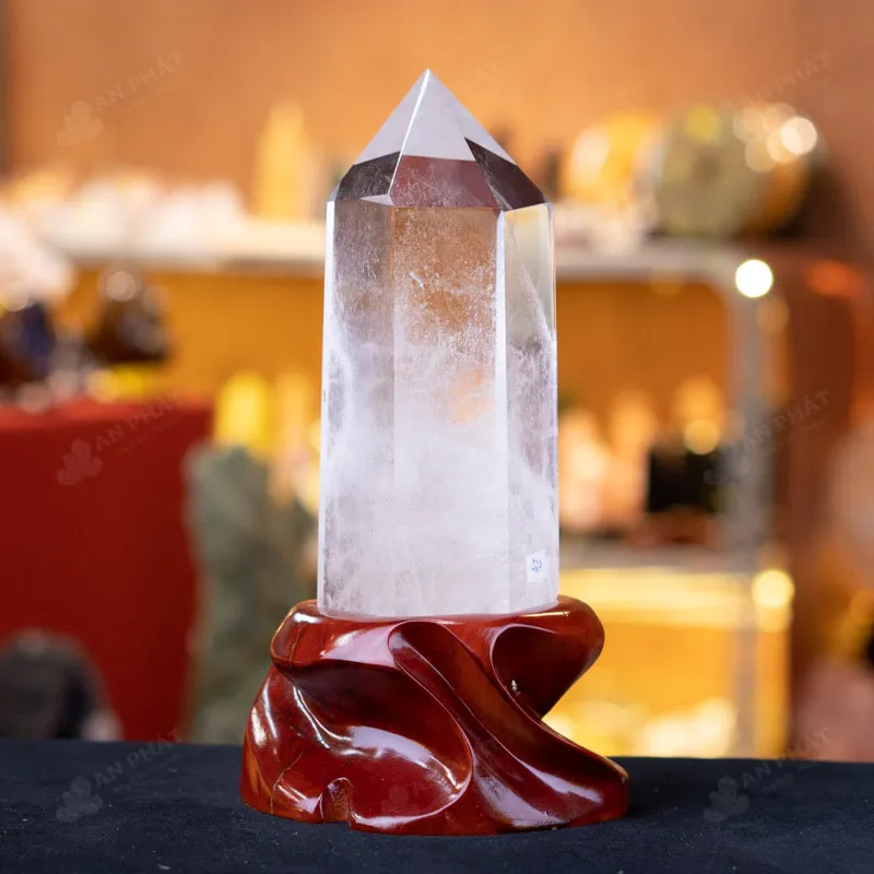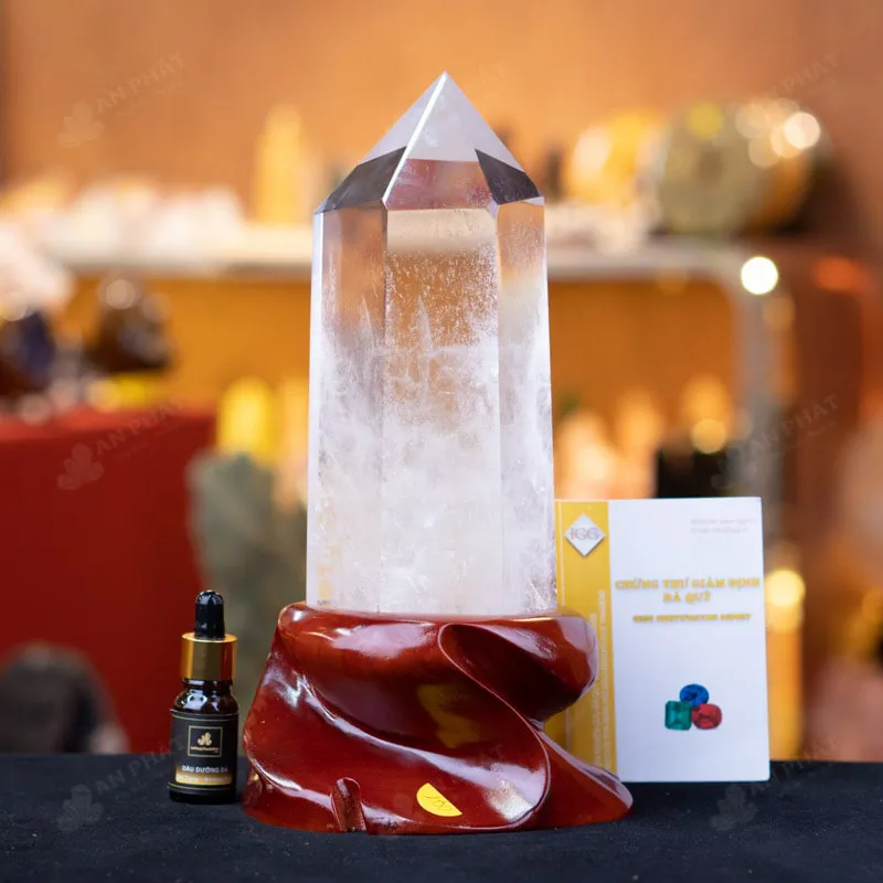 - Trọn bộ sản phẩm bao gồm: trụ thạch anh + đế gỗ + dầu dưỡng đá + thiệp + giấy kiểm định chất lượng đá