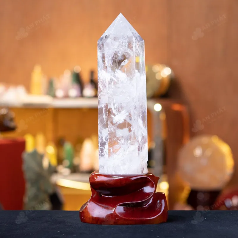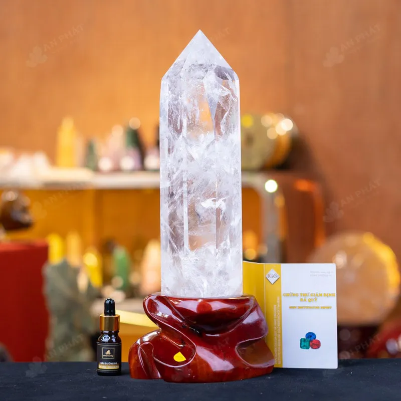 - Trọn bộ sản phẩm bao gồm: trụ thạch anh + đế gỗ + dầu dưỡng đá + thiệp + giấy kiểm định chất lượng đá