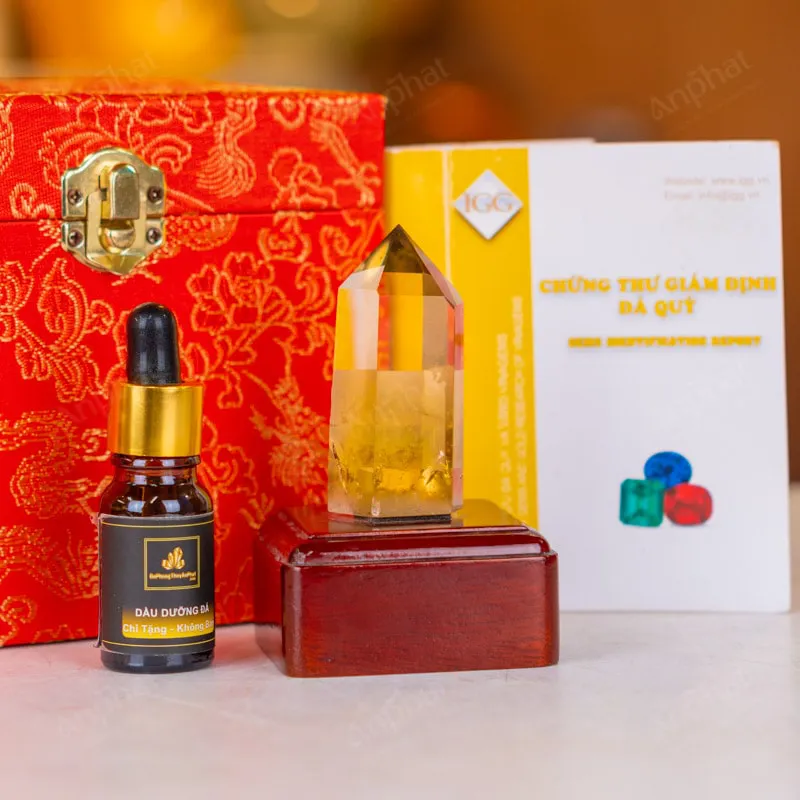 - Trọn bộ sản phẩm bao gồm: trụ đá + đế gỗ + hộp đựng sang trọng + túi giấy sang trọng + dầu dưỡng đá + thiệp + giấy kiểm định chất lượng đá