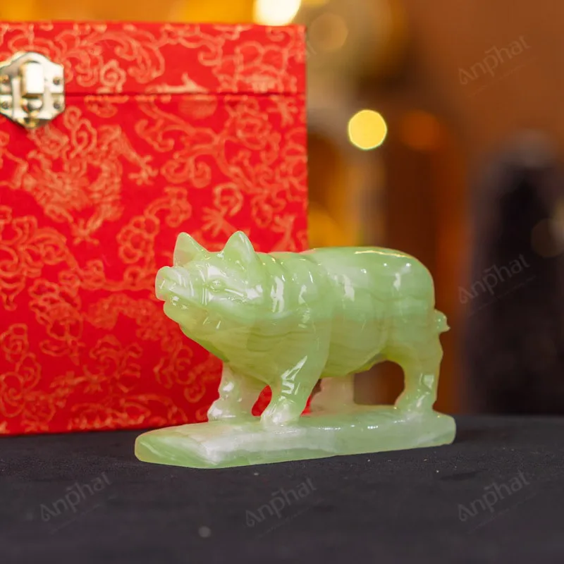 Tượng Lợn Đá Onyx Xanh – 12cm – M2901054