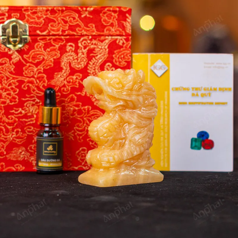 - Trọn bộ sản phẩm bao gồm: Tượng rồng + hộp đựng sang trọng + túi giấy sang trọng + dầu dưỡng đá + thiệp + giấy kiểm định chất lượng đá
