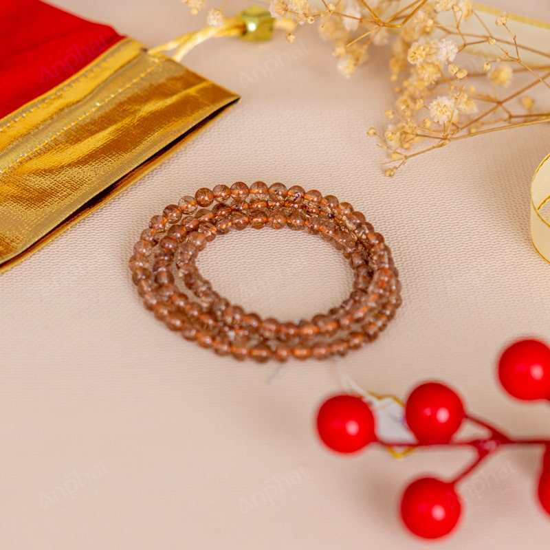 Vòng Tay Thạch Anh Tóc Đỏ 1A Loại Cuốn 3 Vòng 5 Ly 080-0821A-5