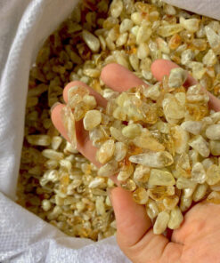 Đây là dòng đá phong thủy được đập vụn từ đá thạch anh vàng tự nhiên nguyên khối, chưa qua xử lý hóa học, giữ nguyên năng lượng địa sinh học từ lòng đất. Đá thường có màu vàng mơ, vàng mật ong hoặc vàng nâu – có thể lẫn tia trắng hoặc vết rạn đá – đó là đặc trưng tự nhiên, chứ không phải đá lỗi như nhiều người nghĩ.